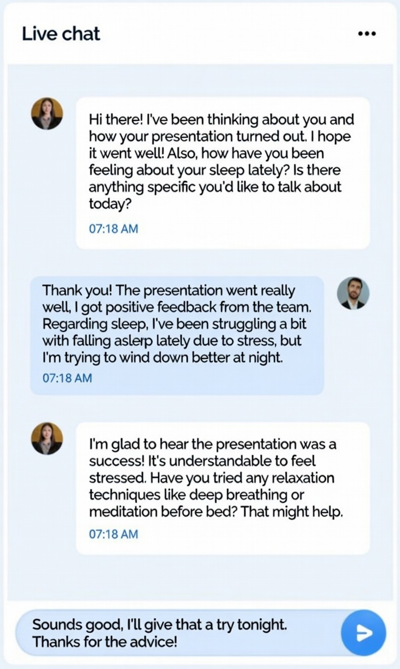 In just a few minutes, you can meet your AI coach, share how you feel, and get a simple plan to feel a little better every day.